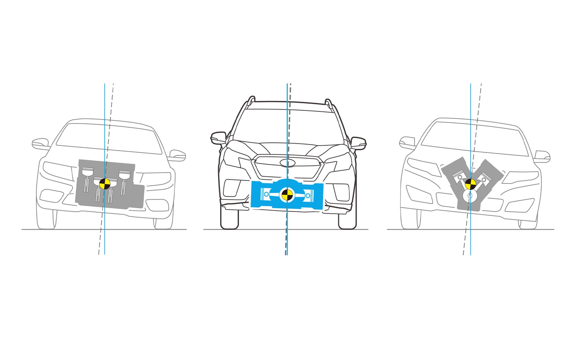 De krachtbronnen die Subaru gebruikt gelden als onverwoestbaar. Alle Subaru's beschikken over BOXER motoren die, afgezien van hun betrouwbaarheid en kracht nóg een belangrijk kenmerk hebben. Dankzij hun unieke opbouw zijn het relatief 'platte' motoren die daardoor in vergelijking met normale motoren ook laag in de motorruimte zijn gemonteerd. De Subaru BOXER motoren dragen daardoor bij tot een laag zwaartepunt van de auto, met alle positieve gevolgen van dien voor de stabiliteit en wegligging.
